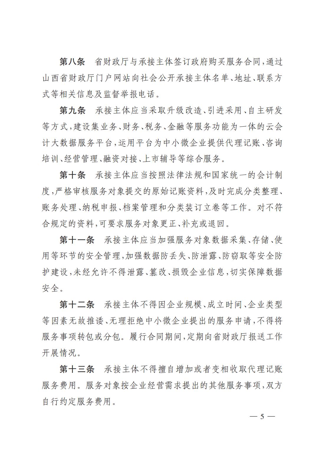 關(guān)于印發(fā)《山西省財政廳為中小微企業(yè)購買代理記賬服務(wù)實施細(xì)則(試行)》的通知